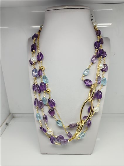 COLLANA LUNGA DOPPIA CON PIETRE NATURALI. POSSIBILITA DI INDOSSO A 4 FILI